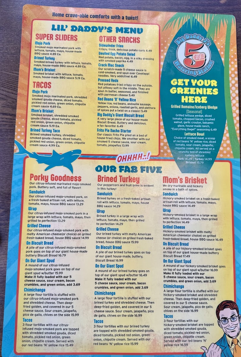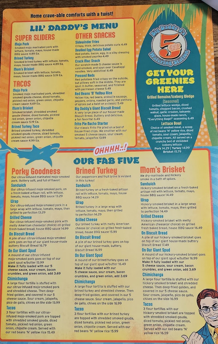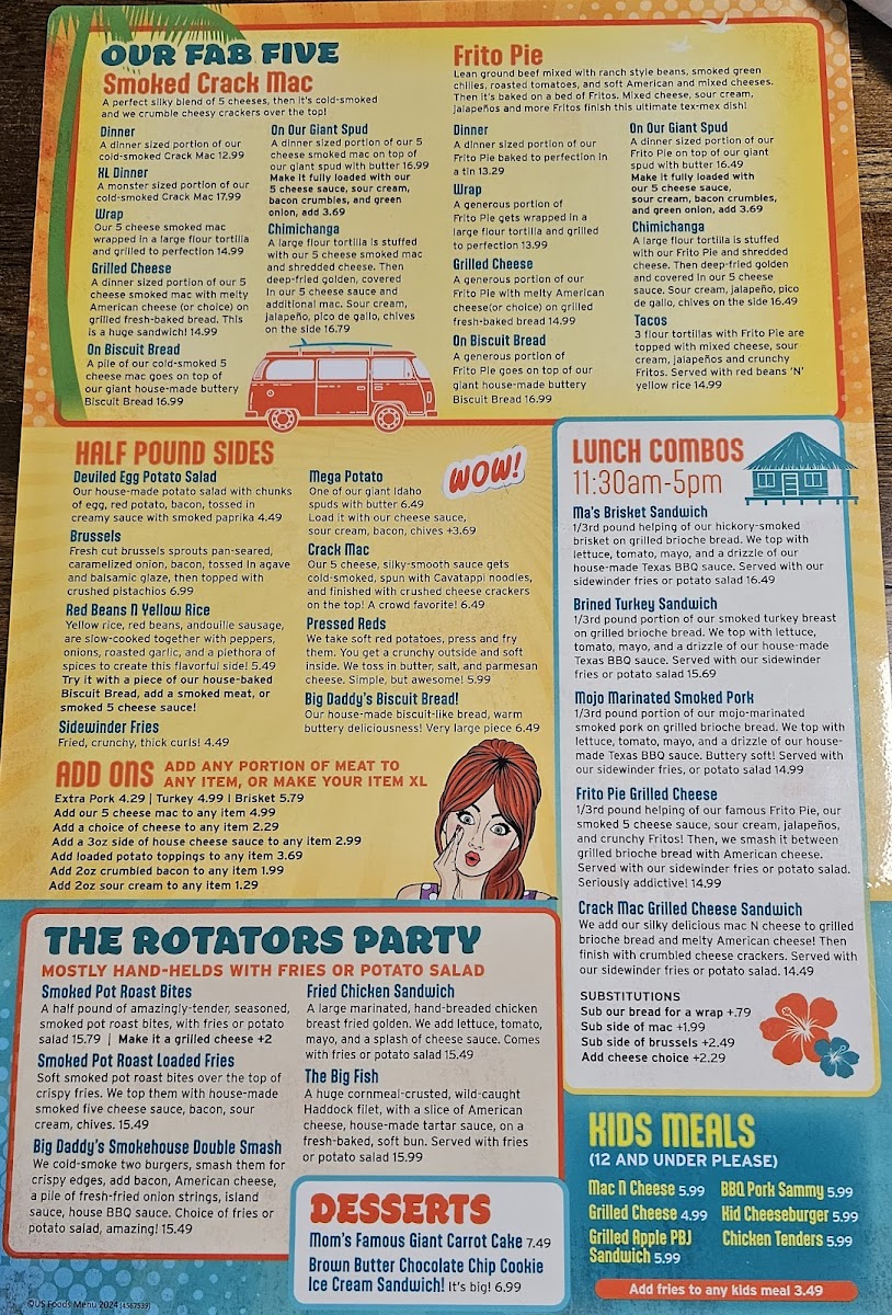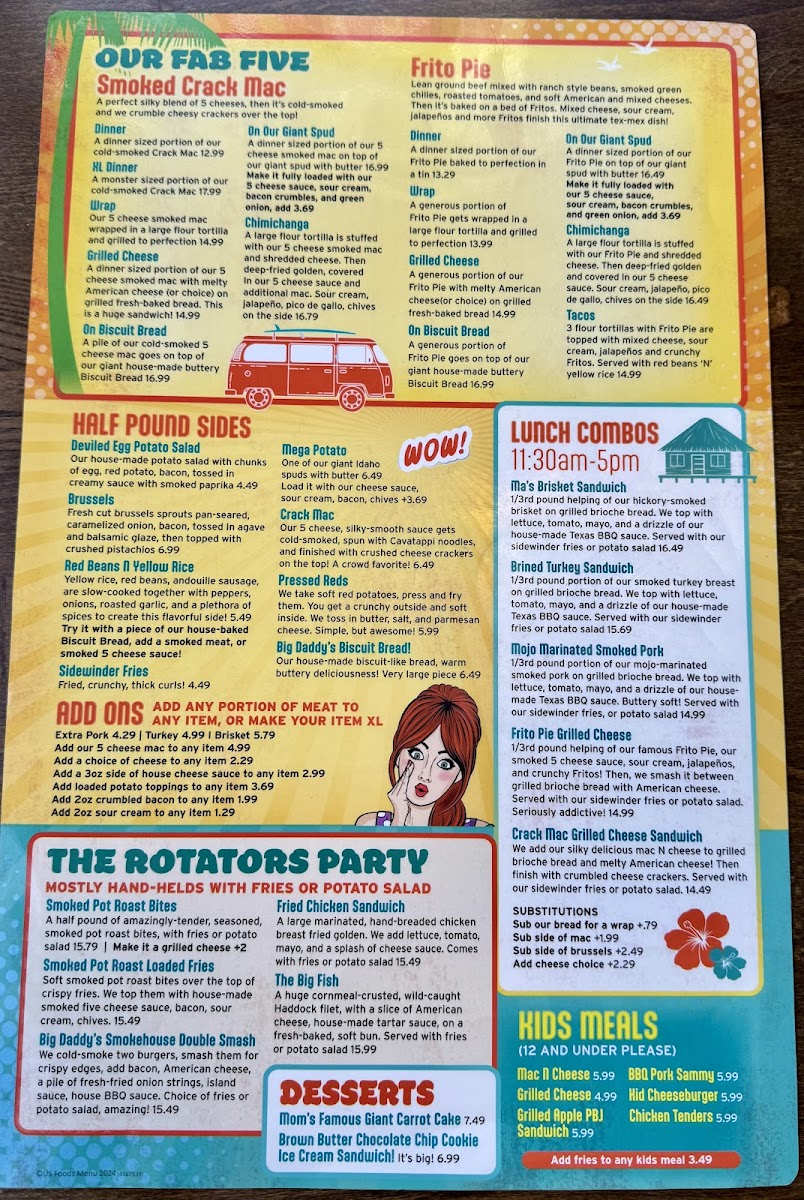 This pack comes with 1 pound of our Smoked Fatty Frito Pie, 3 servings of our crack mac. (1.5+ pounds) 1 pound of our Mojo Smoked Pork, choice of 3 sides, 8 pieces of grilled Texas toast, or 2 pieces of our extra large Biscuit Bread(Additional). Comes with our house made Texas BBQ sauce.